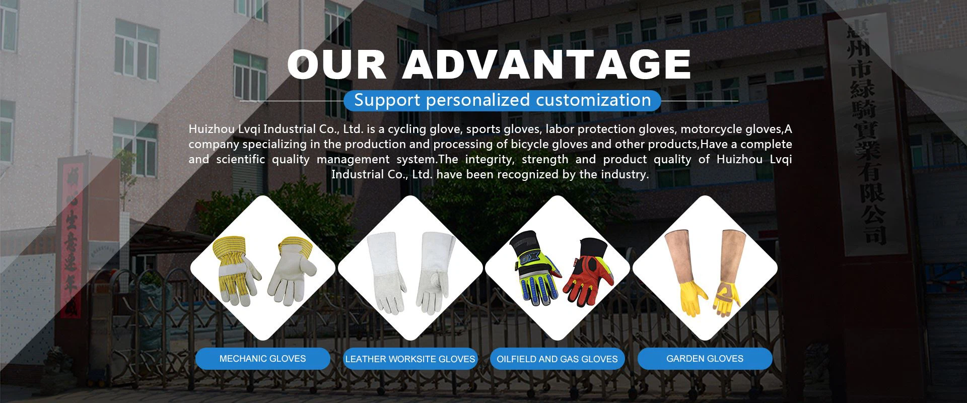 Huizhou Green Rider Industrial Co, Ltd espesyalize nan konsepsyon ak pwodiksyon nan yon pakèt gan, ki gen ladan gan monte bisiklèt, gan motosiklèt, gan travay kwi, gan travay endistriyèl, gan espò deyò, gan gòlf, gan lapèch, ak sak bisiklèt.